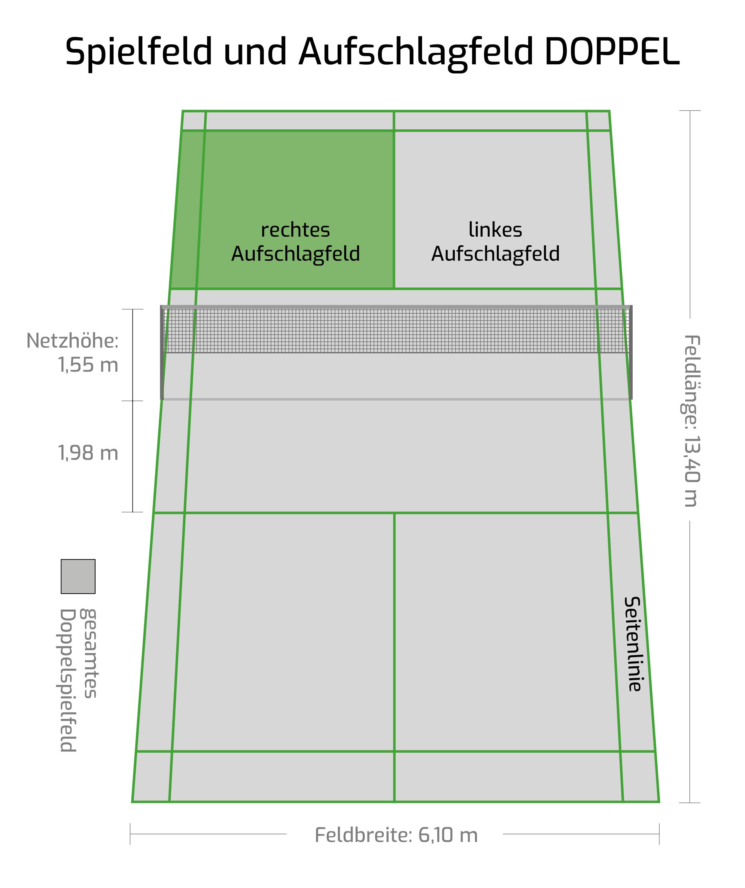 - gerader Spielstand (2,4,6…) = Aufschlag von der rechten Seite