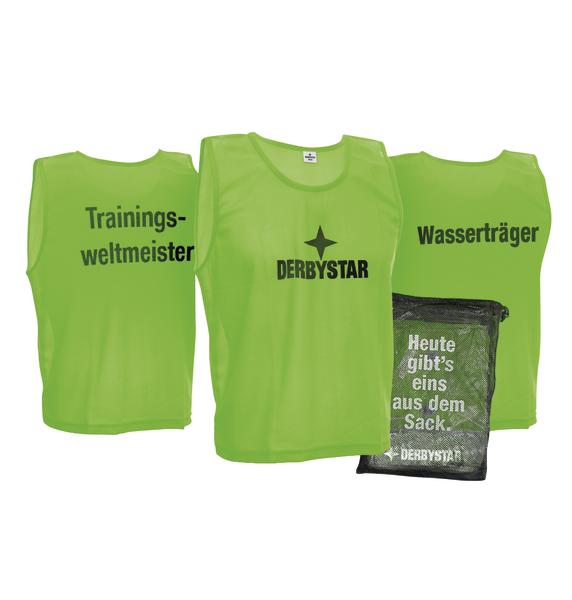 Das Derbystar-Set SPRÜCHE enthält zehn Markierungshemdchen mit verschiedenen Sprüchen auf der Rückseite und ist in drei Farben erhältlich.