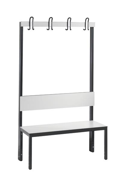Umkleidebank BASIC PLUS einseitig - Feuchtraum ist die praktische und bequeme Ausstattung für Ihren anspruchsvollen Umkleidebereich. Die Kunststoff-Doppelhaken bieten eine zusätzliche Möglichkeit Bekleidung aufzuhängen. Durch die verwendeten Materialien schadet auch erhöhte Luftfeuchtigkeit der Bank nicht.