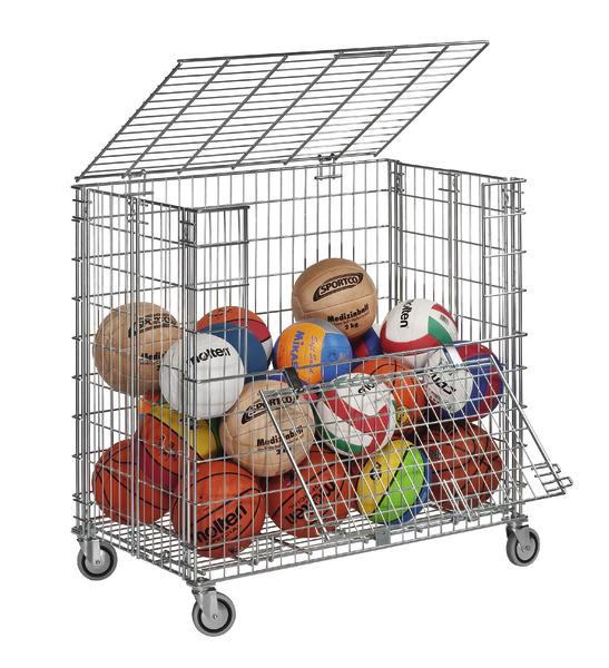 aus Stahldraht mit Ladeklappe. Deckel mit Vorhängeschloss verschließbar.