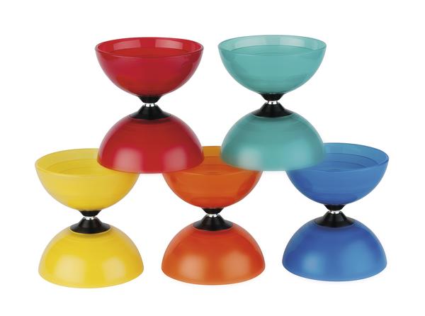 Besonders praktisch ist die Variante mit Freilaufachse, die sich leicht antreiben lässt und in eine Richtung frei auf der Schnur läuft, wodurch das Jonglieren noch einfacher wird. Beide Varianten werden inklusive Stäben mit Schnur geliefert und sind farblich sortiert, sodass direkt losgelegt werden kann.