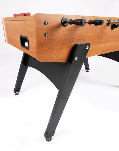 Fußballkicker MASTER-CUP DELUXE ist der ideale Tischkicker für Einrichtungen mit hohem Sicherheitsanspruch. Dieser Tischkicker besticht durch sein stilvolles Kirschbaum-Dekor und die kratzfeste Resopalbeschichtung, die ihn besonders widerstandsfähig und langlebig macht. Die massiven Holzfüße bieten durch höhenverstellbare, rutschfeste Tellerfüße eine optimale Standfestigkeit, auch auf unebenen Böden, was eine präzise Ausrichtung des Kickers ermöglicht. Der Korpus besteht aus robustem ca. 25 mm starkem MDF und ist mit verschleißarmen Doppelkugellagern ausgestattet. Die hochglanzverchromten Teleskop-Massiv-Stahlstangen mit einem Durchmesser von ca. 16 mm garantieren eine exzellente Stabilität. Die bruchfesten Spielfiguren entsprechen dem Turnierstandard und sind besonders langlebig, auch bei intensiver Nutzung.