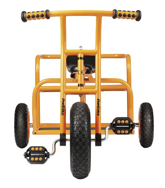 TopTrike Doppeltaxi bietet Platz für bis zu 3 Kinder. Auf der hinteren Bank finden zwei Kinder Platz und können sich bequem durch den Fahrer chauffieren lassen. Selbstverständlich wird dann gewechselt - das soziale Miteinander wird spielerisch trainiert.