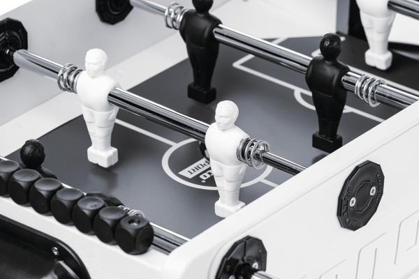 Tischkicker Mini-Fun besitzt eine vergrößerte Öffnung für die Ballentnahme, daher wird die Ballentnahme erleichtert. Die 16 mm starken Kickerstangen bestehen aus Edelstahl, was dem Spielen im Outdoor-Bereich zusätzlich eine wetterfeste Eigenschaft verleiht. Darüber hinaus ist der Tischkicker Mini-Fun auf zwei Höhen einstellbar und somit ideal für Klein und Groß. Zocken die Kids ein Kicker-Match kann die Höhe schnell und einfach auf 78 cm reduziert werden. Daher wird das Spielen mit diesem Kickertisch insbesondere Kindern leichter gemacht. Bestellen Sie noch heute Ihren neuen Tischkicker Mini-Fun und bieten Sie Ihren Kindern stundenlang Spielspaß.