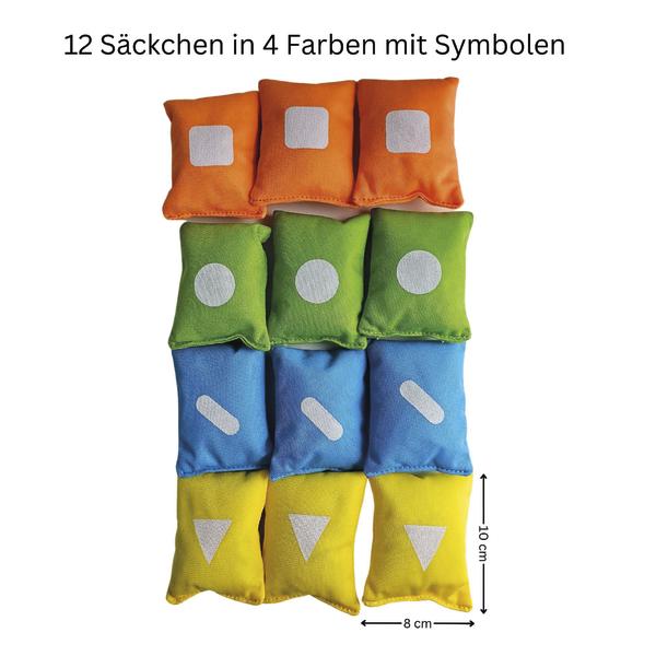 - 12 gefüllte Stoffsäckchen in 4 Farben