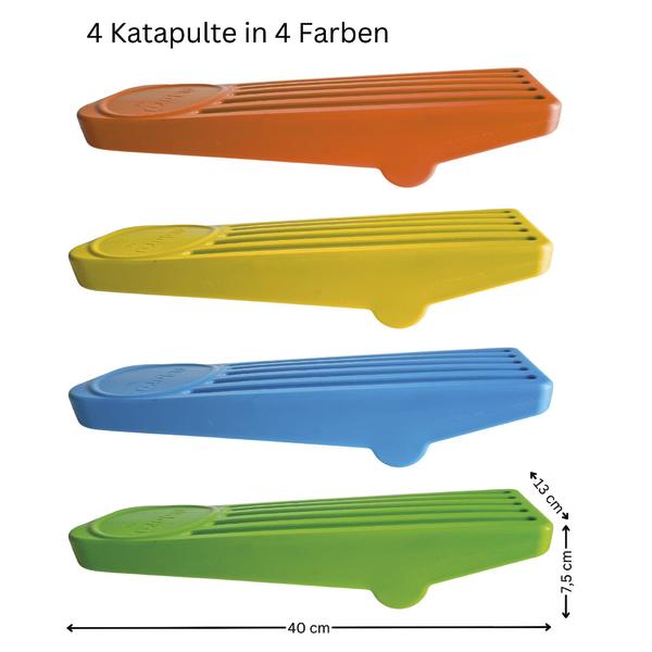 Kick & Dart XXL ist ein Geschicklichkeitsspiel für bis zu vier Spieler. Ziel des Spiels ist es die Säckchen auf die Spielfelder zu bringen - dies kann durch Werfen mit der Hand oder dem Katapult erfolgen. Wer am Ende die meisten Punkte erreicht hat, gewinnt.