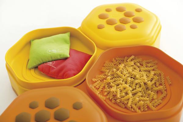 Die Balanciersteine sind mit einer geschlossenen, genoppten Wabe sowie einer offenen, befüllbaren Wabe ausgestattet. Durch die Befüllung mit unterschiedlichen Materialien erfahren die Füße beim Laufen verschiedene Reize und werden stimuliert. Die mitgelieferten bunten Säckchen können zudem individuell mit verschiedenen Materialien gefüllt werden. Ein abwechslungs- und erlebnisreicher Balancepfad für Ihre Einrichtung!