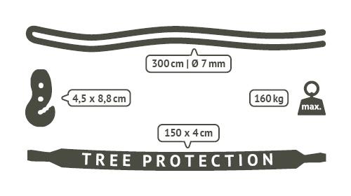 - extrabreiter Baumgurt zur Schonung der Baumrinde