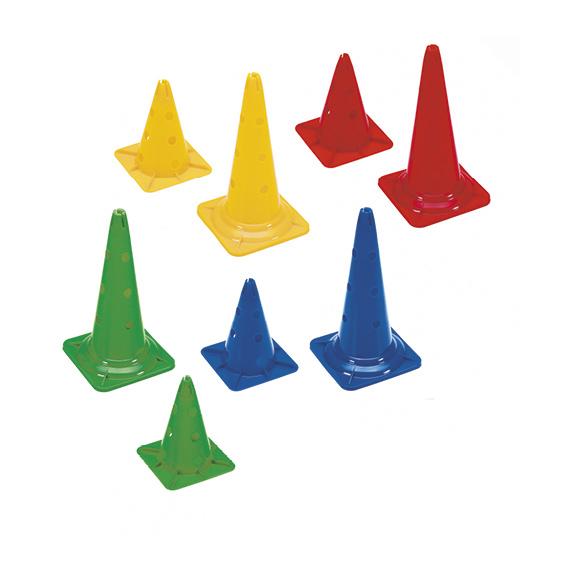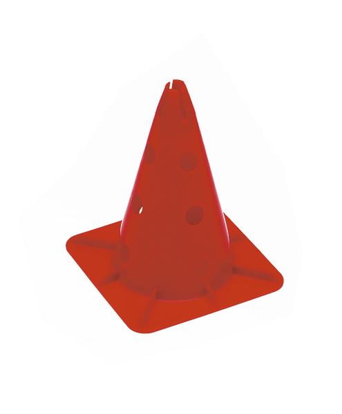 aus robustem Kunststoff mit 12 Löchern und geschlitzter Spitze zum Einstecken von Gymnastik-Flachreifen und Stäben.