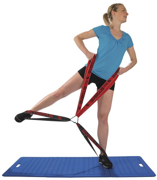 2 rote elastische Bänder mit einer Zugkraft von 10 kg (Länge 70 cm) und 2 schwarze elastische Bänder mit einer Zugkraft von 15 kg (Länge 35 cm) verbunden mit einem flexiblen Ring. Ideal für das Training von Armen, Beinen, Bauch, Po und Rücken. Waschbar bei 30º.
