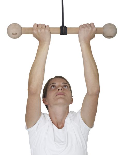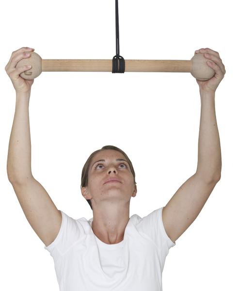 Pedalo® Klimmzugstange KUGELGRIFF unterstützt ein vielseitiges Muskeltraining durch verschiedene Griffarten. Die mittig frei abgehängte Klimmzugstange zeigt muskuläre Dysbalance im Körper auf und verhindert das Ausgleichen durch den "starken Arm". Wird an einer Seite stärker gezogen, zeigt sich dies am Verhalten der Klimmzugstange und diese gerät aus der Waagerechten.